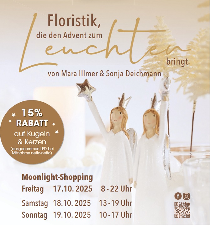 Genießen Sie unsere familiäre Atmosphäre und lassen Sie sich beeindrucken vom Charme der Räumlichkeiten. Tauchen Sie ein in unsere Inspirationswelt. Erleben Sie stimmungsvolle Trendthemen im Schauraum, Vorträge von meisterhaften Floraldesignern und ein gut sortiertes Vollsortiment. Uns verlässt kein Kunde ohne einen Rucksack voll neuer Ideen!