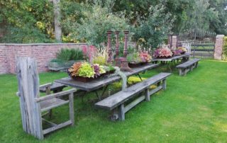Zu einem Einkauf bei euch gehört auch immer ein Rundgang durch die Gartenanlagen! Erholung pur!“ Nicht wenige Kunden verbinden ihren Besuch mit einem entspannten Spaziergang durch unseren Garten. Vor oder nach dem Einkauf, gerne auch währenddessen, nutzen Kunden ihre Zeit im Garten zum Entschleunigen, zum Inspirieren, zum Begeistern, zum Erholen. Mit viele Liebe zum Detail haben wir unterschiedliche Bereiche entwickelt: ob an der Teichlandschaft, unter den Obstbäumen, im Gemüsegarten, im Gartenhaus, an unseren zwei Brunnen, rund um den Pferdestall, zwischen dem Hortensientraum oder in der Allee bieten wir Sitzgelegenheiten zum Verweilen und Genießen.